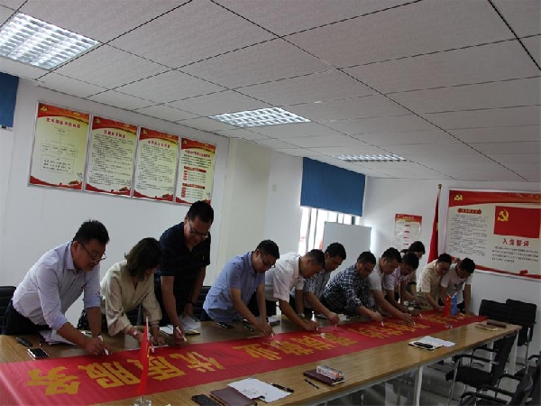 會(huì)后,安徽瑞特黨支部組織全體黨員干部簽訂《廉潔從業(yè)承諾書(shū)》,并在“廉潔自律 勤儉節(jié)約 愛(ài)崗敬業(yè) 優(yōu)質(zhì)服務(wù)”橫幅上簽字。