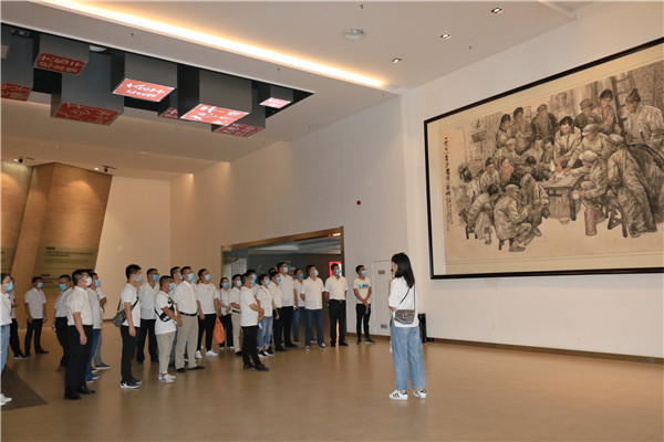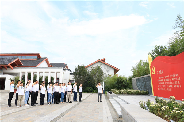 參觀結(jié)束后,全體黨員來到陳列館門前,在鮮紅的黨旗下,再一次舉起右拳,重溫入黨誓詞,作出莊嚴宣誓。