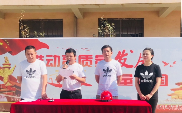 安建建材副總經(jīng)理、蚌埠建材黨支部書記、總經(jīng)理陶良敬宣布“質(zhì)量月”活動正式啟動,最后,全體員工依次在印有“推動高質(zhì)量發(fā)展 建設(shè)質(zhì)量強(qiáng)國”展板上簽名。