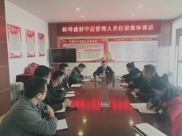 為進(jìn)一步加強(qiáng)中層管理人員思想政治建設(shè),讓他們牢記使命和責(zé)任,知敬畏、守規(guī)矩,在新的工作崗位上清白做人、干凈做事。11月12日上午,安建建材副總經(jīng)理、蚌埠建材黨支部書記、總經(jīng)理陶良敬,代表公司黨支部對(duì)5位新任職的中層管理人員開展了任前集體談話和廉潔談話。公司黨支部委員會(huì)各位委員參加了本次談話會(huì)。