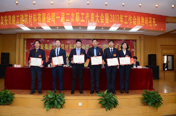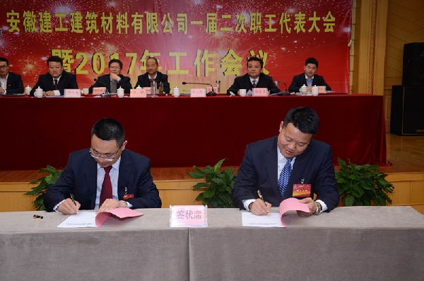 大會(huì)聽(tīng)取并審議通過(guò)了《總經(jīng)理工作報(bào)告》、《財(cái)務(wù)工作報(bào)告》、《業(yè)務(wù)招待費(fèi)使用情況報(bào)告》、《安徽建工建筑材料有限公司薪酬管理制度》、《安徽建工建筑材料有限公司職工聯(lián)席會(huì)議制度》,簽訂了目標(biāo)責(zé)任書(shū),表彰了2016年度先進(jìn)單位、先進(jìn)集體、先進(jìn)個(gè)人;集團(tuán)黨委對(duì)公司領(lǐng)導(dǎo)班子成員進(jìn)行了2015—2016年度民主測(cè)評(píng)。