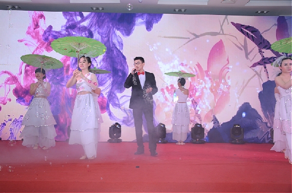 文藝演出在年味濃郁的《開門紅》中拉開帷幕,優(yōu)雅圣潔、熱情洋溢的現(xiàn)代舞蹈《共圓中國夢》充分展示了安建建材員工積極向上的精神面貌;戲曲舞蹈《粉墨人生》以曼妙的身段贏得臺下陣陣掌聲;小品《教你處關(guān)系》、相聲《新白蛇傳》、默劇《破繭重生》詼諧幽默、包袱不斷,現(xiàn)場氣氛熱烈、笑聲不斷;情景劇《未來我們一起走》笑中帶淚,展現(xiàn)安建建材一線員工堅守工地?zé)o私奉獻(xiàn)的精神;建材好聲音戴明明、劉禮彬等也紛紛獻(xiàn)唱。晚會期間,安建建材黨委副書記、紀(jì)委書記胡運春一展歌喉,一曲《想家的時候》將晚會推向了高潮。晚會最后在一曲氣勢磅礴、大愛無疆的《愛中華 中國之夢》大合唱中落下了帷幕。