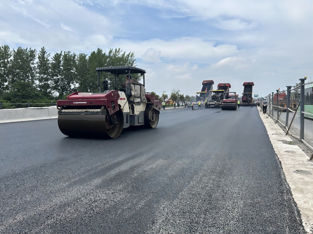 新途建材G347通江大道03標(biāo)段SMA-13瀝青面層試驗(yàn)段順利攤鋪完成