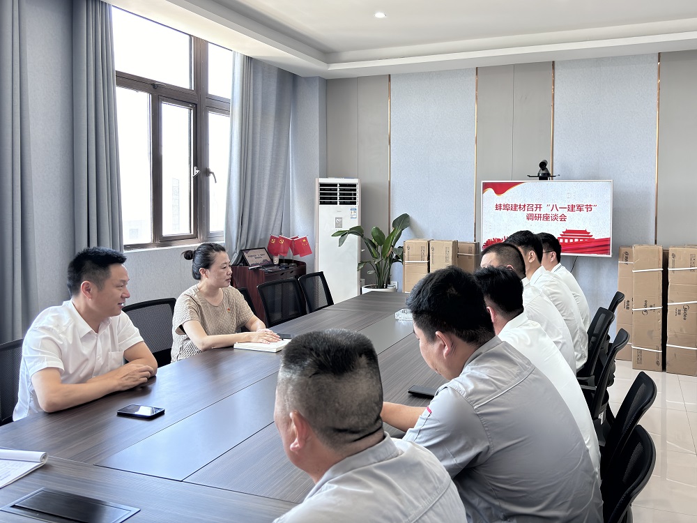 7月31日上午,蚌埠建材召開“八一”建軍節(jié)調(diào)研座談會。公司黨支部書記、工會主席沙薇莉主持會議,公司總經(jīng)理助理李粹永、退伍軍人代表參加會議。