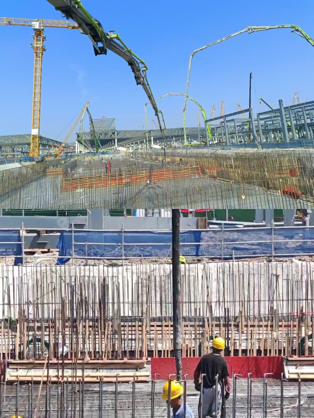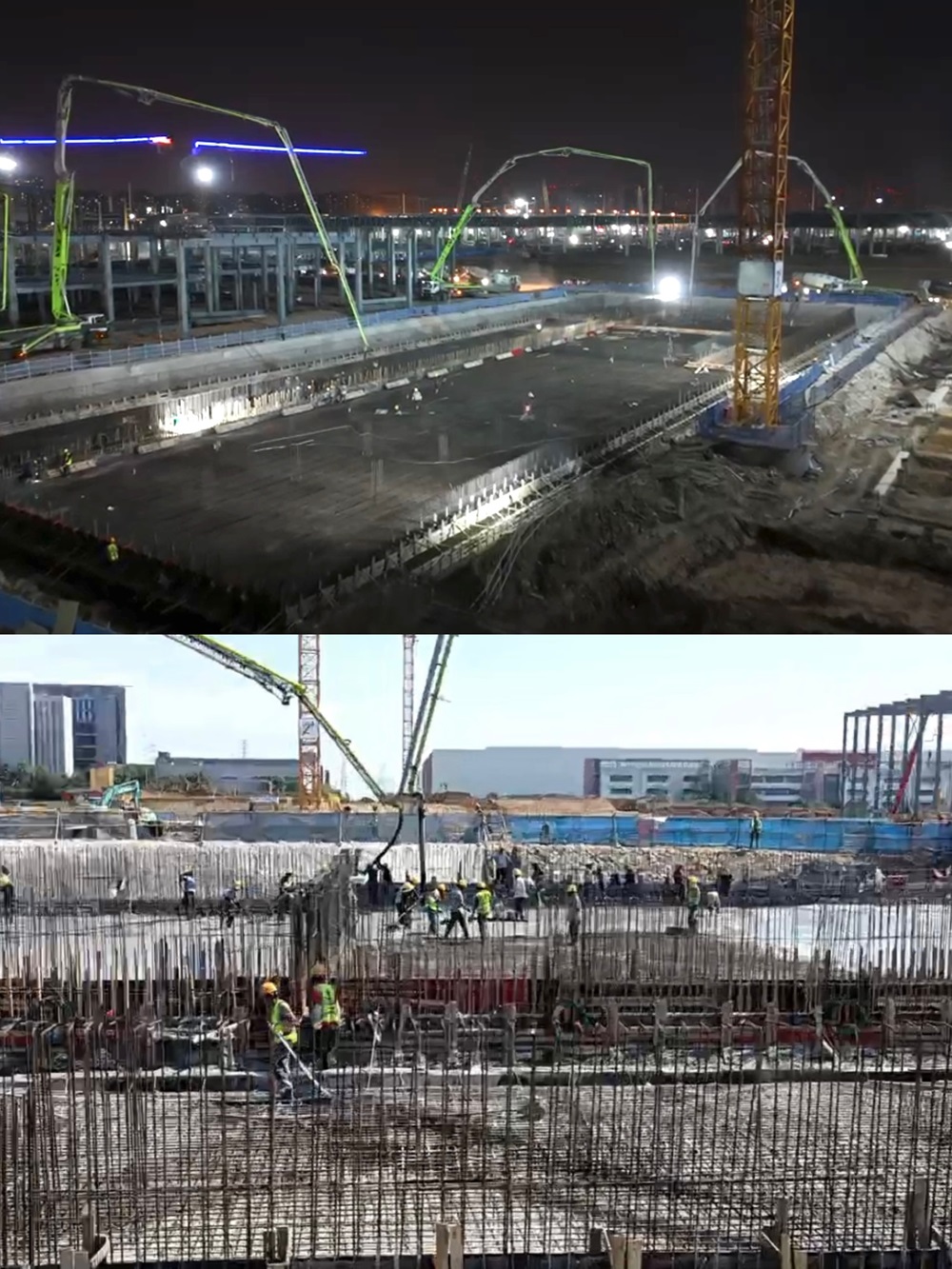此次大體積筏板澆筑時間緊、任務(wù)重,難度大,澆筑期間最高溫度達(dá)38℃,持續(xù)高溫更是為澆筑任務(wù)帶來極大挑戰(zhàn)。為確保倉面順利澆筑,公司領(lǐng)導(dǎo)班子帶隊進(jìn)行現(xiàn)場踏勘,并結(jié)合現(xiàn)場實際組織制定專項澆筑方案以及應(yīng)急預(yù)案。澆筑期間,各站點協(xié)同合作,各部門全程跟蹤服務(wù),做好材料保供、現(xiàn)場信息反饋、生產(chǎn)運(yùn)輸、車輛統(tǒng)籌調(diào)度等工作,在全體人員的共同努力下,僅20小時完成澆筑,較原計劃提前10小時完成,高效率保障服務(wù)得到施工方高度認(rèn)可。