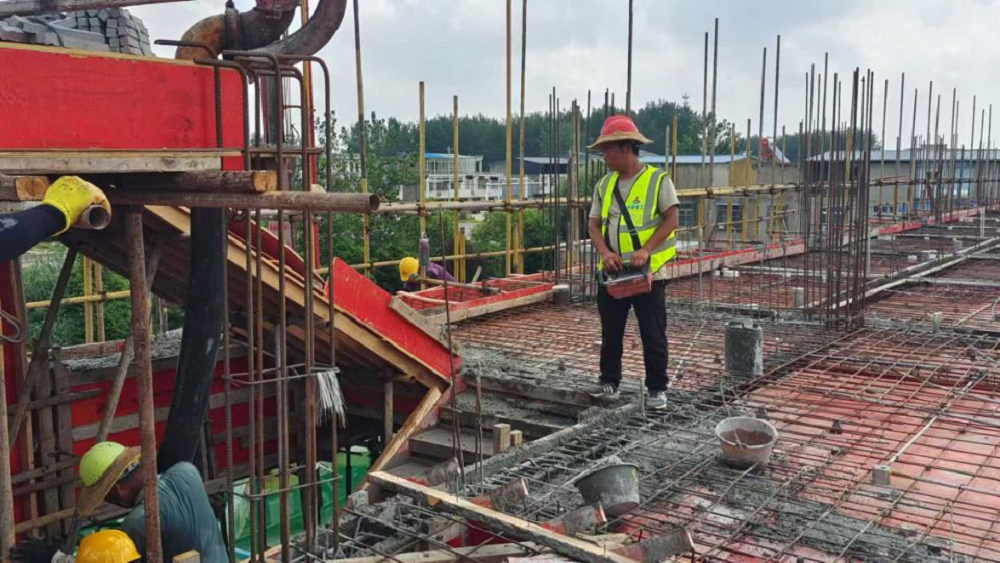 施工現(xiàn)場(chǎng)3:蚌埠建材淮上中心站工作人員在現(xiàn)場(chǎng)保障現(xiàn)場(chǎng)澆筑質(zhì)量及安全