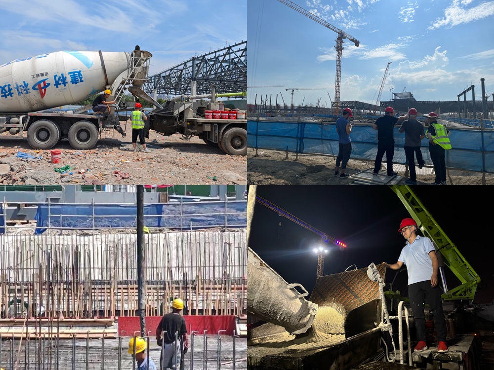 在大眾產(chǎn)業(yè)園施工一線,公司駐場(chǎng)保供人員日夜奮戰(zhàn),克服高溫,忙碌的身影穿梭在施工現(xiàn)場(chǎng)的各個(gè)角落。他們的皮膚被太陽(yáng)曬得通紅,汗水浸透衣衫,“烤”干了,又濕了,再次“烤”干,在全體人員的共同努力下,僅用了20小時(shí),就完成了3822方混凝土澆筑工作,圓滿高效的完成澆筑任務(wù),用行動(dòng)贏得項(xiàng)目?jī)?yōu)質(zhì)好評(píng)。