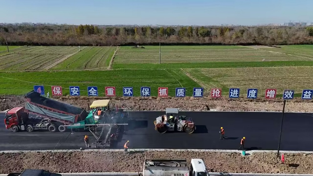 嘉和建材科技園參建的Y011蚌淮高速項目攤鋪瀝青路面長3.44km,寬12米。自2024年10月份進場施工以來,項目部集中組織施工人員、鋪筑設備和壓路機開展施工攻堅,在確保安全和質量的前提下,力抓工期節(jié)點主線,積極與參建各方溝通協(xié)調,保質保量完成了瀝青攤鋪任務。