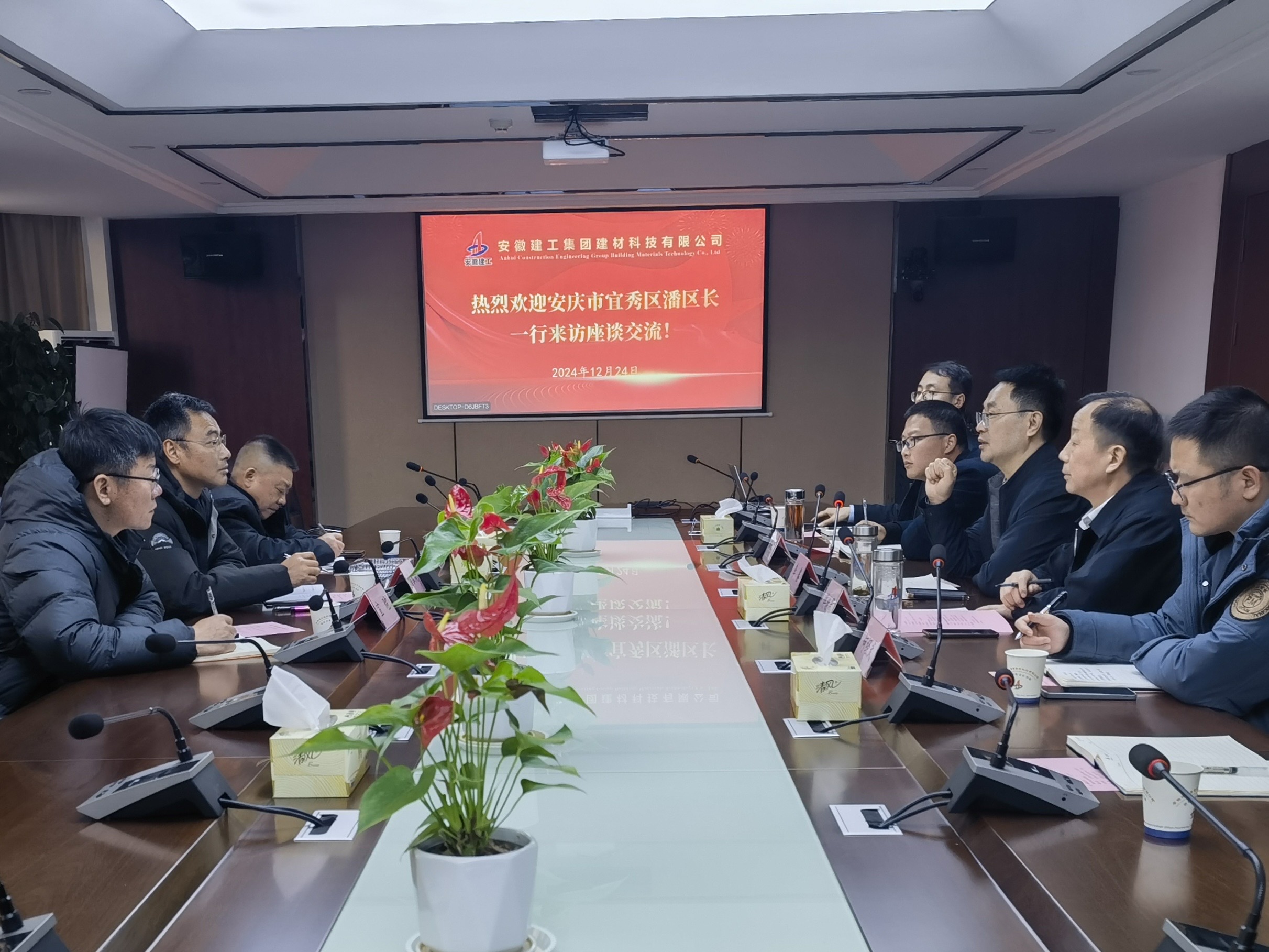 12月24日下午,安慶市宜秀區(qū)政府黨組成員、副區(qū)長(zhǎng)潘長(zhǎng)周一行到訪建工建材,公司黨委副書(shū)記、副總經(jīng)理、董事李鑫熱情接待,雙方圍繞政企合作進(jìn)行交流座談。