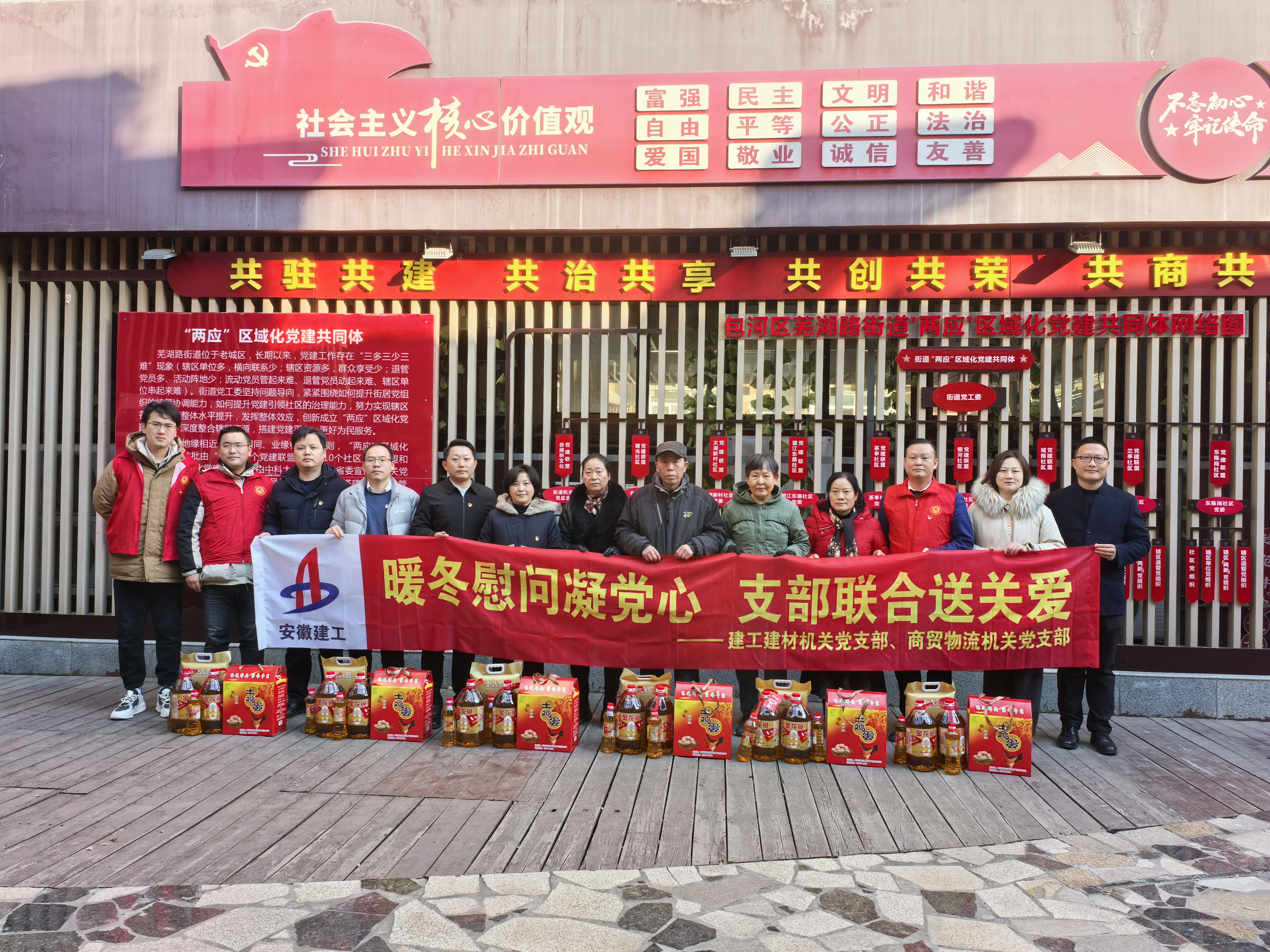 春節(jié)即將來(lái)臨之際,為貫徹落實(shí)黨的二十屆三中全會(huì)精神,切實(shí)履行國(guó)企的社會(huì)責(zé)任,讓更多困難群體感受到社會(huì)的溫暖。1月17日上午,建工建材機(jī)關(guān)黨支部聯(lián)合商貿(mào)物流機(jī)關(guān)黨支部開(kāi)展“暖冬慰問(wèn)凝黨心 支部聯(lián)合送關(guān)愛(ài)”慰問(wèn)活動(dòng),為城南社區(qū)6名困難黨員、4名困難群眾送去關(guān)懷與溫暖。