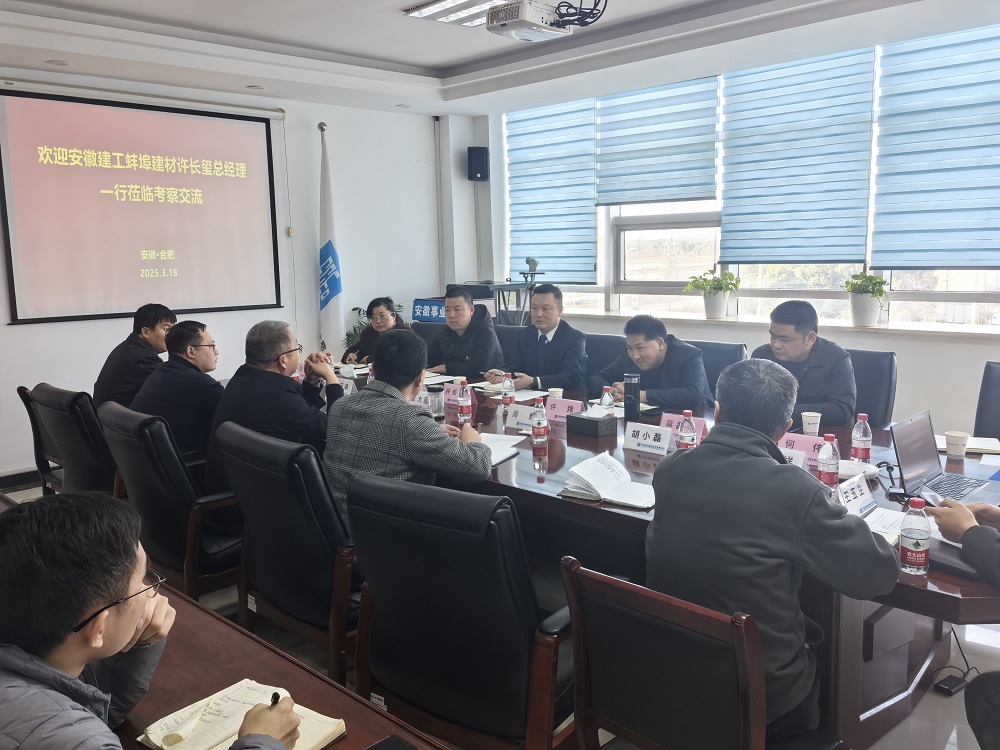 2025年3月18日,蚌埠建材黨支部書記、執(zhí)行董事、總經(jīng)理許長(zhǎng)璽一行前往中建商品混凝土公司交流研討。中建商砼安徽事業(yè)部總工程師夏大回?zé)崆榻哟?