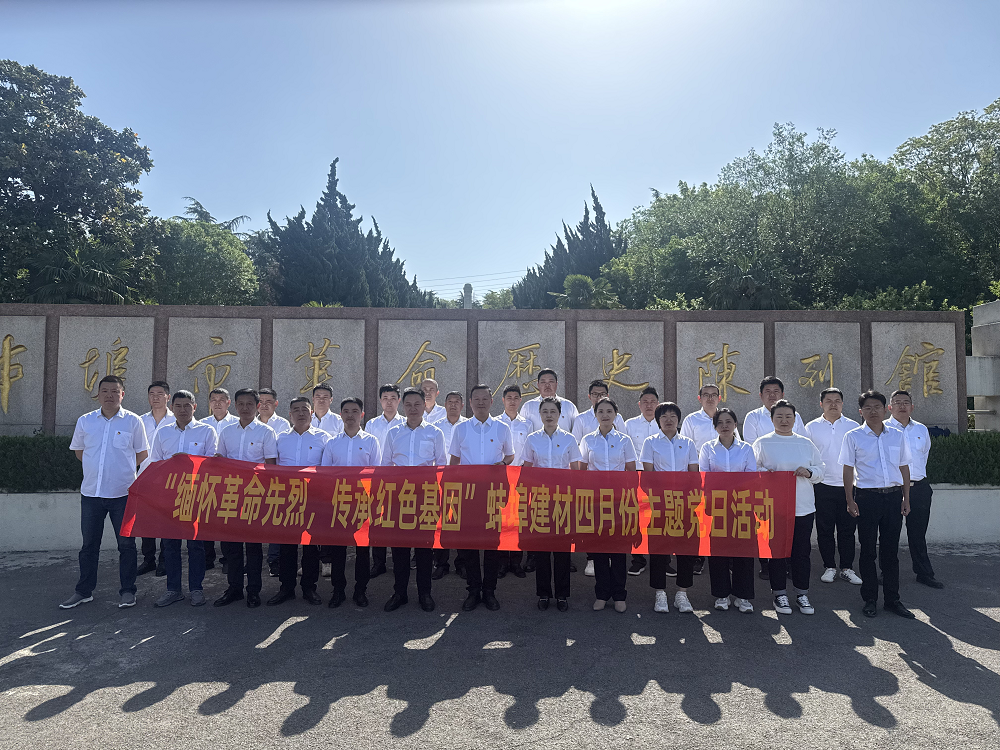 為緬懷革命先烈,賡續(xù)紅色基因,弘揚(yáng)愛(ài)國(guó)主義精神,4月25日,蚌埠建材黨支部組織領(lǐng)導(dǎo)班子、全體黨員及骨干員工赴蚌埠市革命歷史陳列館開(kāi)展"緬懷革命先烈,傳承紅色基因"4月份主題黨日活動(dòng)。