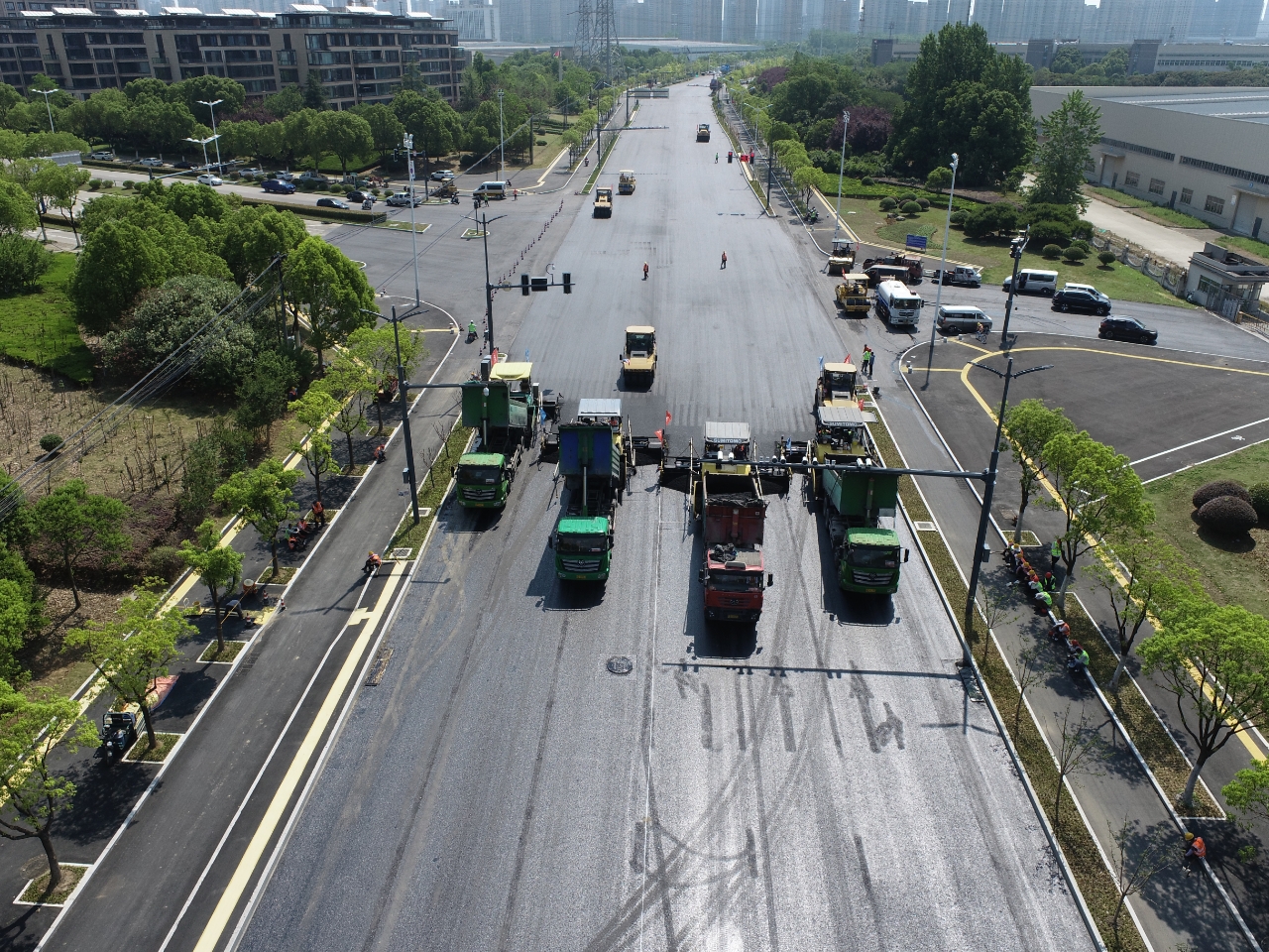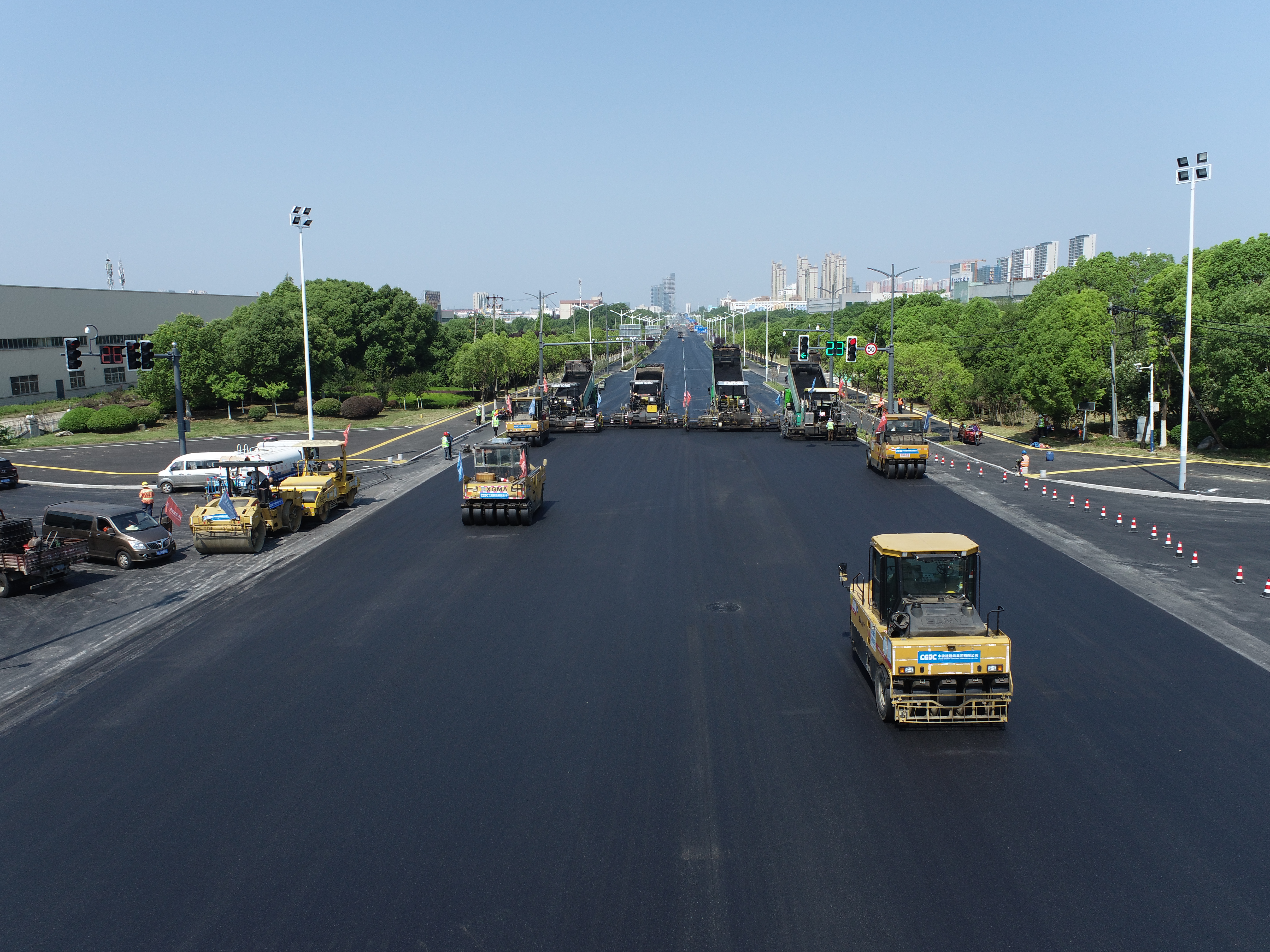 火辣五月,驕陽(yáng)似火,在合肥市政銘傳路提升改造項(xiàng)目施工現(xiàn)場(chǎng),呈現(xiàn)出一片熱火朝天的繁忙景象。新途建材作為承建方,正全力推進(jìn)K1+160 - K2+608段主線全幅面層瀝青攤鋪工作。