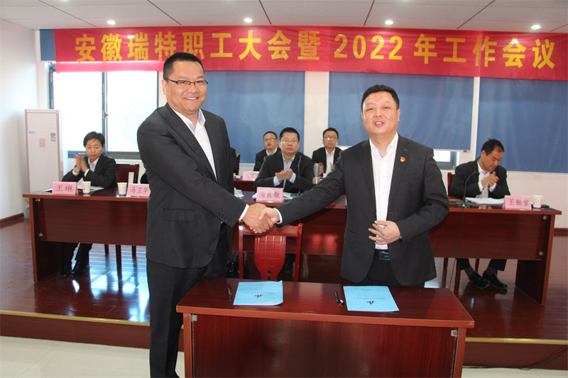 會議聽取了安徽瑞特《2021年財(cái)務(wù)工作報(bào)告》《2021年度三公經(jīng)費(fèi)使用情況報(bào)告》《領(lǐng)導(dǎo)班子述職述責(zé)述廉報(bào)告》;表彰了2021年度先進(jìn)集體和先進(jìn)個人;對建工控股集團(tuán)二屆二次職代會精神及建材科技二屆二次職代會暨2022年工作會議精神進(jìn)行了宣貫;與營銷管理中心簽訂了2022年經(jīng)營目標(biāo)責(zé)任書。會議同時(shí)根據(jù)建材科技黨委統(tǒng)一安排,對安徽瑞特領(lǐng)導(dǎo)班子年度考評,并開展建材科技公司中層優(yōu)秀干部民主推薦工作。